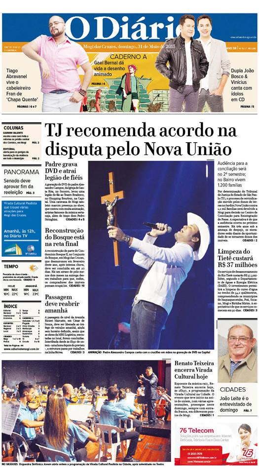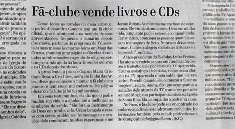 Reportagem do jornal O Diário de Mogi referente a caravana da Capital Federal que virá a Mogi das das Cruzes para a Missa de Cura e Libertação com o padre Alessandro Campos.